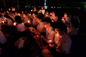 ในตอนค่ำ มีพิธีจุดเทียนส่องทางนักเรียนหอวังรุ่นที่ 48 (พิธีเทียน) จากนั้น นักเรียนจะลอดซุ้มของโรงเรียนโดยมีคุณครู และคณะผู้บริหาร คอยส่งนักเรียนเข้าสู่ ซุ้มของสมาคมฯ โดยมีพลอากาศโท ธวัชชัย ฝ่ายทอง นายกสมาคมและคณะกรรมการ คอยต้อนรับสมาชิกใหม่ของสมาคมฯ