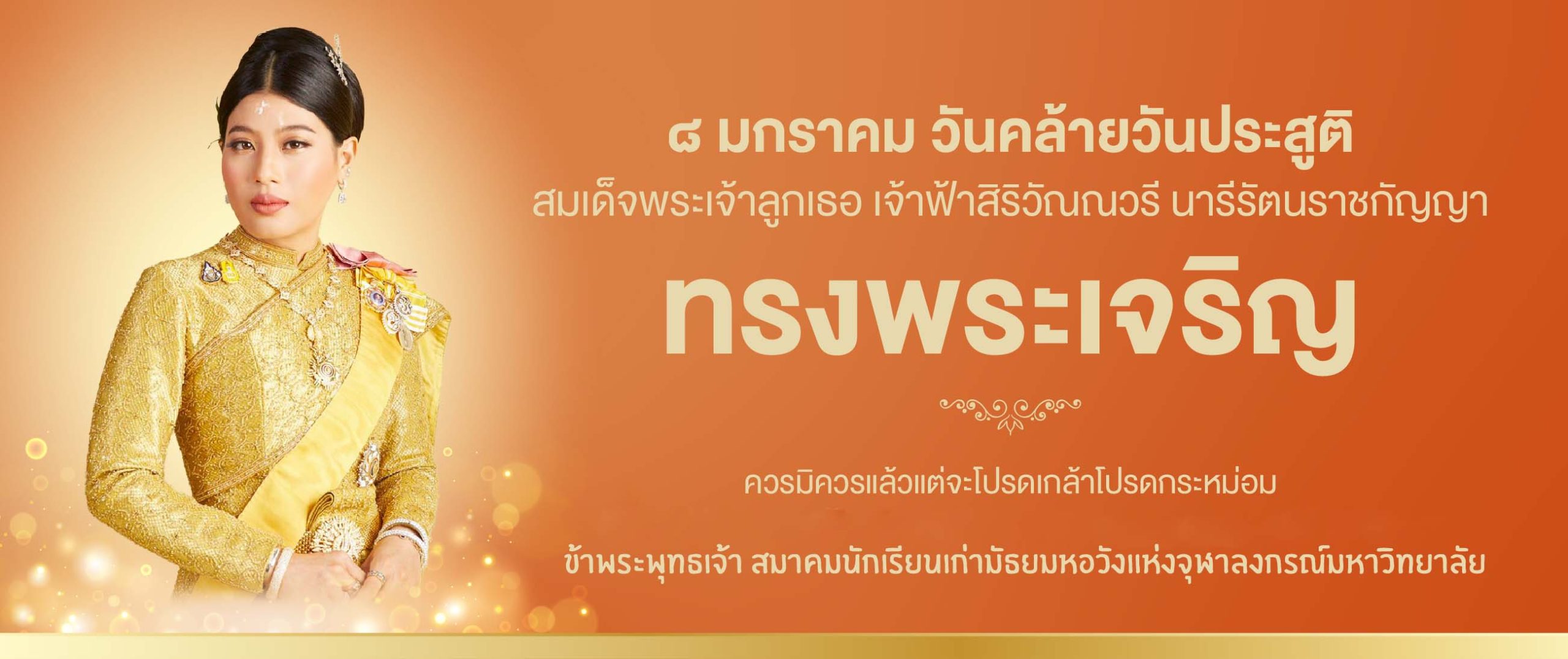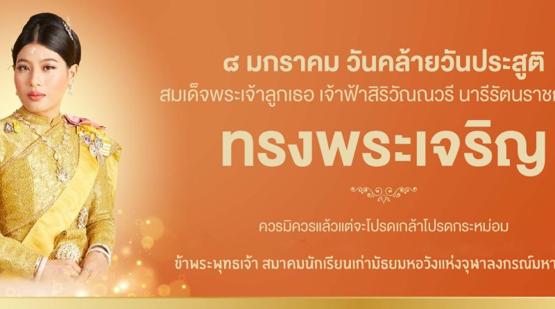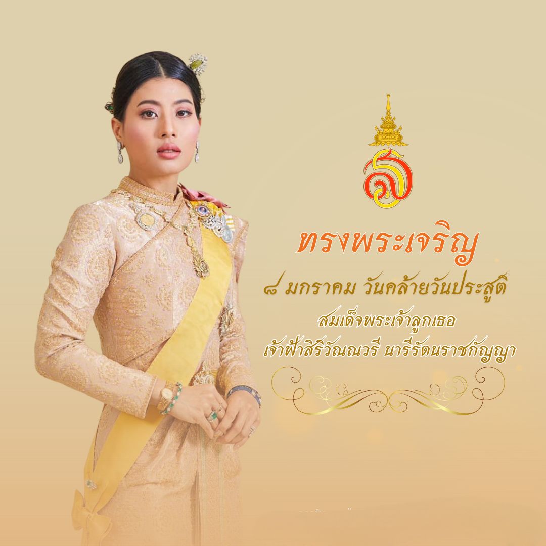8 มกราคม วันคล้ายวันประสูติสมเด็จพระเจ้าลูกเธอ เจ้าฟ้าสิริวัณณวรี นารีรัตนราชกัญญา